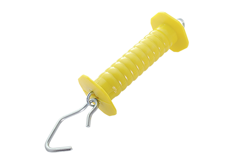 O isolador manopla é indicado para ser utilizado em porteiras onde o espaço é reservado a passagem de animais sem a necessidade de desligar a cerca elétrica. Podendo ser colocado em cercas rurais elétricas, fixas ou móveis. Basta conectar o punho isolador diretamente no arame, fio eletroplástico ou fita. O isolador porteira possui pegador isolado, mola curta e gancho. Proporcionando segurança para a pessoa que for abrir a porteira, evitando o risco de choque.